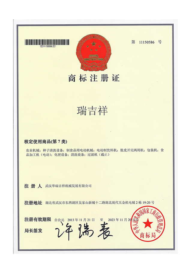 注冊人武漢華瑞吉祥機械發(fā)展有限公司