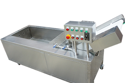新型氣泡清洗機(jī)6GQ-22采用高壓氣體產(chǎn)生鼓泡,循環(huán)水泵沖浪和提升高壓噴水三重清洗。有效分離蔬菜上面粘連的泥沙,雜質(zhì)。并設(shè)置過濾除雜裝置,過濾裝置通過毛輥和濾網(wǎng)的滾動(dòng),有效分離蔬菜上面粘連的爛葉、菜渣和毛發(fā)等雜質(zhì),雜質(zhì)由循環(huán)水溢水口流出,被循環(huán)水槽里的濾網(wǎng)隔離,以保持凈菜的清潔。清洗過程噴淋和高壓噴嘴持續(xù)供水,供水量可調(diào),方便客戶根據(jù)蔬菜處理量及清潔程度進(jìn)行靈活調(diào)節(jié)。
