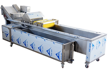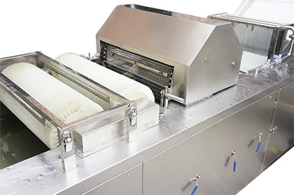 智能氣泡洗菜機(jī)工作原理:物料進(jìn)入水槽,在高壓水流和強(qiáng)力氣泡的作用下,被充分打散、翻滾、清洗、傳送。從物料表面洗脫的泥沙沉入底部隔離倉,不會發(fā)生翻揚回流造成再度污染。漂浮在水中的雜物、小蟲通過去雜機(jī)構(gòu)的網(wǎng)孔收集,細(xì)絲、頭發(fā)等通過毛輥清理掉。洗凈的物料出水后再經(jīng)噴淋清洗,送至下道工序。本廠另有蔬菜蒸煮機(jī)、殺青機(jī)、冷卻線、風(fēng)干線等配套設(shè)備。是蔬菜、食品加工、餐飲等行業(yè)的理想設(shè)備。智能氣泡洗菜機(jī)由電機(jī)、洗...