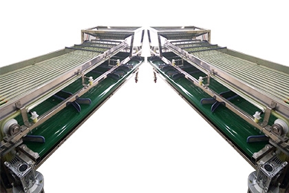 本款果蔬分級(jí)分揀機(jī)為體積分級(jí)分選,可按農(nóng)作物的體積大小進(jìn)行級(jí)別分級(jí),傳送帶在傳送過(guò)程中作物跟著前進(jìn),落在這上面的時(shí)候,下面那個(gè)軟管就把它們的方向拔正,分級(jí)道的尺寸是越靠近進(jìn)料口就進(jìn)小,所以體積小的會(huì)先掉下去,體積大的要到后面間距大的地方才會(huì)落下去,這種分級(jí)可隨意按需進(jìn)行,想分幾級(jí)分幾級(jí),只要分級(jí)道夠長(zhǎng),下面的隔板可以隨意加減,也可以上傳送帶,完成流水線式作業(yè)。