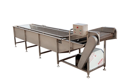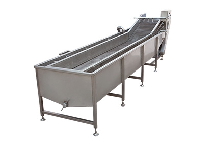 蔬菜清洗機(jī)設(shè)備除電機(jī)、軸承等標(biāo)準(zhǔn)件外均采用不銹鋼SUS304材料制作,完全符合出口食品衛(wèi)生要求。設(shè)備中設(shè)有氣泡發(fā)生裝置,使物料呈翻滾狀態(tài),去除產(chǎn)品表面農(nóng)殘功效,同時(shí)可加入適量的藥劑,進(jìn)行消毒固色,漂浮物可以從溢流槽溢出,沉淀物從排污口排出,以達(dá)到清洗的目的。氣泡清洗機(jī)是針對(duì)外形要求高的物料設(shè)計(jì),適用于:蔬菜、水果、水產(chǎn)品、中草藥等顆粒狀、葉狀、根莖類產(chǎn)品清洗、浸泡。